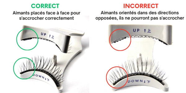 Astuce : Assurez-vous que la courbure des cils suit la courbure de la pince. Les aimants doivent être bien plaqués contre le métal.